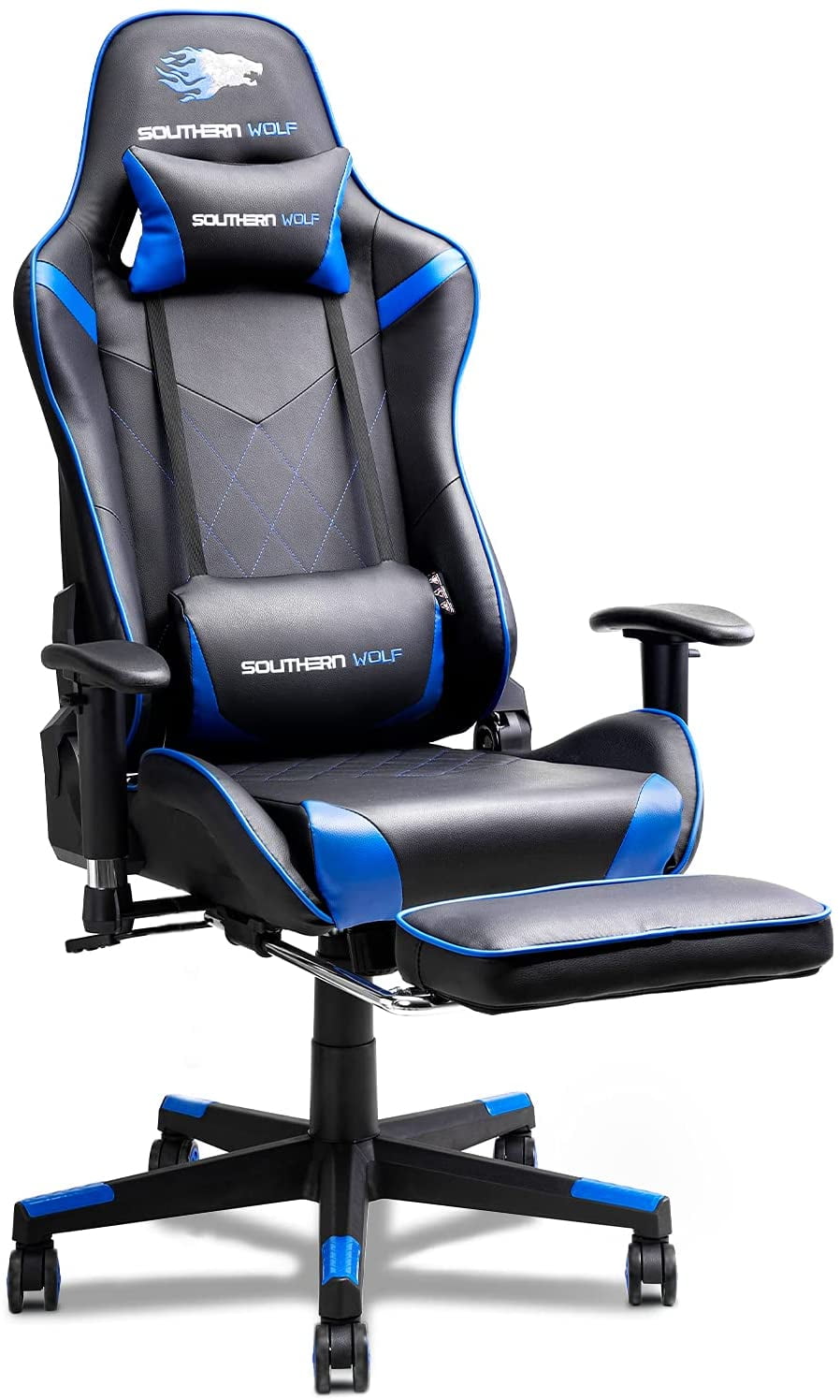 Southern Wolf Video Gaming Chair Office Chair With Lumbar Support Racing Style Pu Leather Adjustable Swivel Task Chair With Footrest Ergonomic Computer Chair Reclining High Back Walmart Com